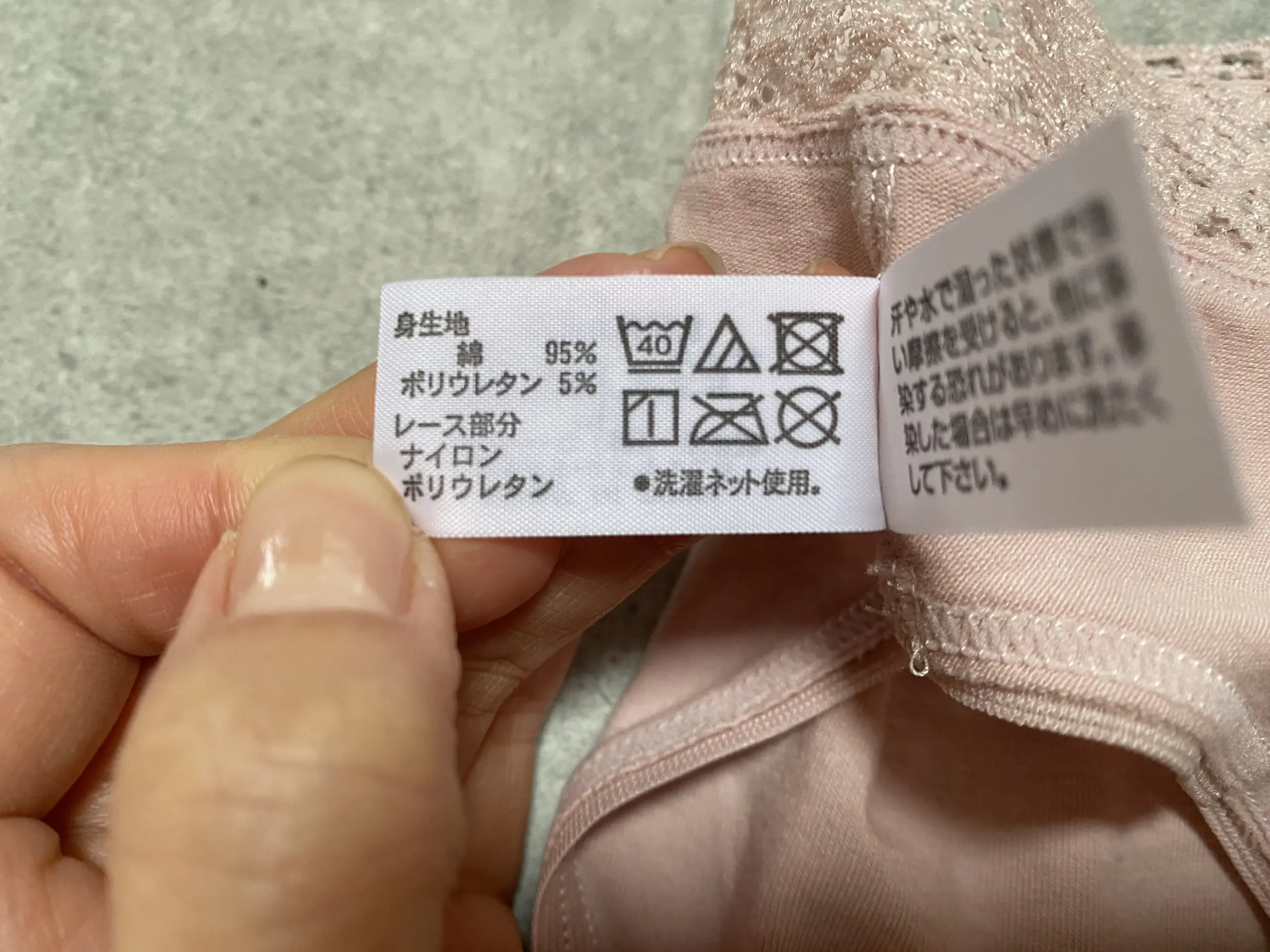 最近はタグのない下着もありますが、この商品は内側にタグが付いています。