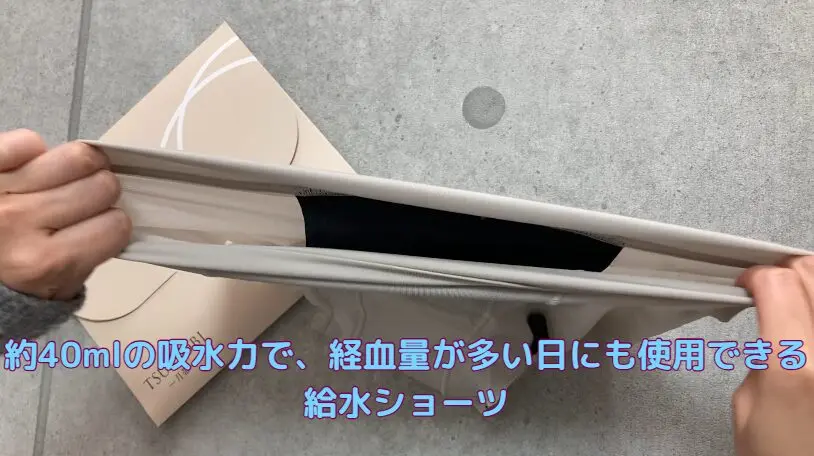 このショーツは吸水量が約40mlと多めなので、ナプキンと併用することで安心感が高まります。